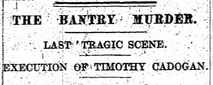 During the early afternoon of Saturday the 24th of February 1900, William Symms Bird, a local Land Agent and Justice of the Peace, was shot to death in his office in the market town of Bantry in West Cork. Within twenty-four hours a farm labourer named Timothy Cadogan was arrested and charged with the murder.